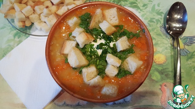 | Вся наша семья любит гороховый суп. Несмотря на то, что данный рецепт не содержит ароматных копчёностей, суп получается удивительно вкусным, гармоничным и лёгким, т. е. не несёт "взрывных" последствий. |