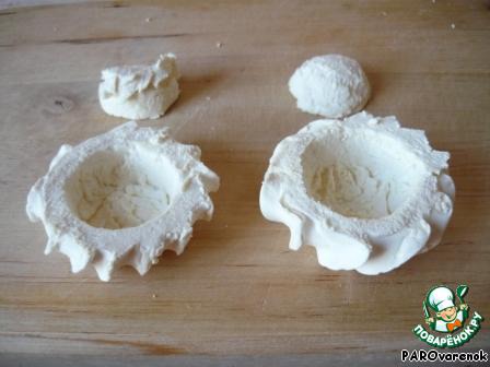 Смачиваем нож. Зефир разрезаем пополам, ножом намечаем контур круга, чайной ложкой вырезаем серединку у зефира. "Ленивые" тарталетки готовы!