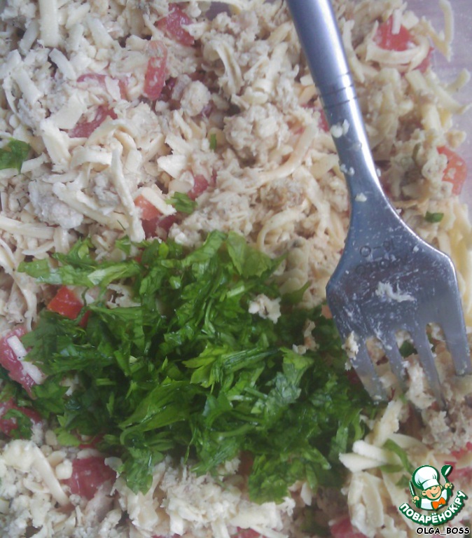 Все соединяем, добавляем мелко порезанную зелень.