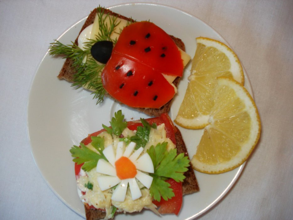 Бутерброды закусочные "Помидорка под шубой" и "Божья коровка"