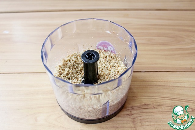 Для этого измельчить в блендере грецкие орехи в крошку (орехи можно взять любые!).