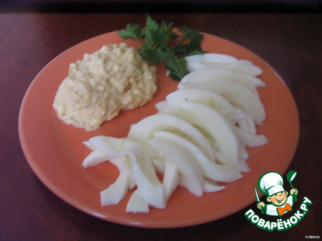 Сливочное масло размягчить + половина тертого сыра + желтки + майонез + горчица + перец (можно чуть соли). Все тщательно перемешиваем.
