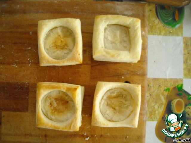 Тесто сильно не размораживать, разрезать его на квадратики.