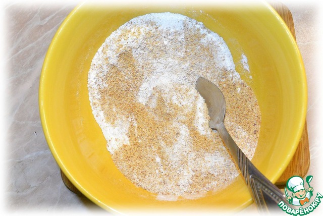 Сделать панировку: смешать муку с молотыми панировочными сухарями и