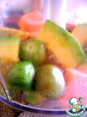 Для чатни овощи очистить, промыть, обсушить и уложить в чашу блендера. Пробить в крупную крошку в пульсовом режиме. Острый перец я брала средней степени жгучести, не только для остроты, но и для аромата. Ориентируетесь на свою стойкость в количестве перца.