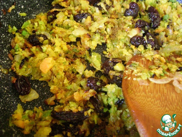 Залить капусту чатни и запечь в духовке при температуре 180 градусов в течении 10 минут. Дать постоять в духовке без нагрева еще 10 минут.