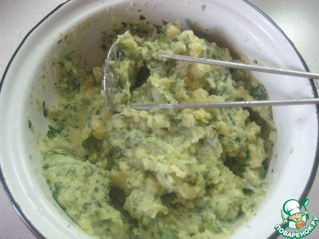 Картофель очистить, отварить до готовности, дать немного остыть. Размять в пюре.