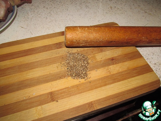 Сначала мясо хорошенько натереть этой смесью, а затем, положив в посуду для маринования, залить этой смесью. Оставить мариноваться на 2-3 часа (можно на ночь)