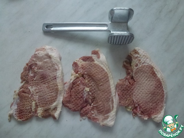 Мясо промыть и обсушить, промокнув бумажным полотенцем. Кусочки слегка отбить.