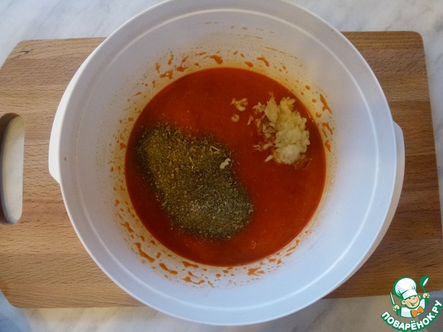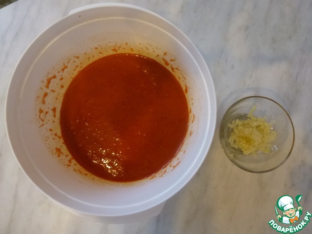 Лечо измельчить в блендере. Чеснок мелко натереть.