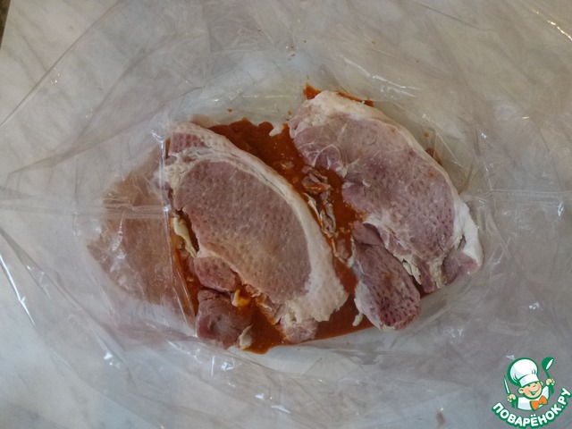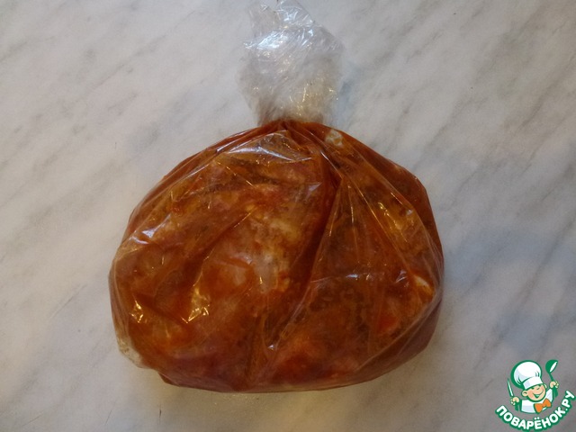 Мясо положить в небольшой пакет, вылить в него лечо.