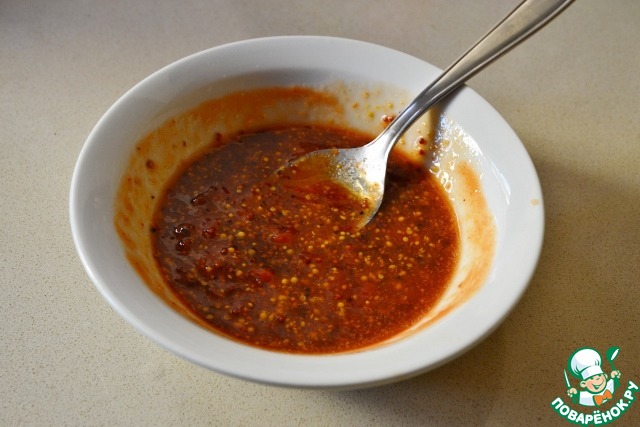 Смешиваем горчицу, томатную пасту, мед, немного цедры, соль - это будет наша глазурь.