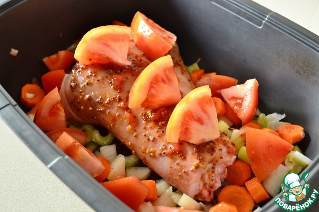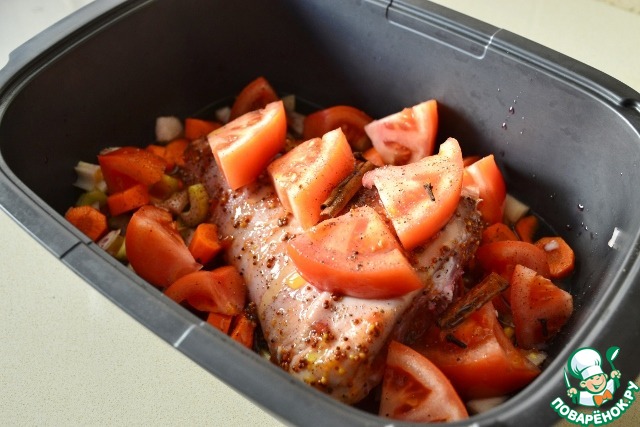 Ароматная рулька, запеченная с овощами