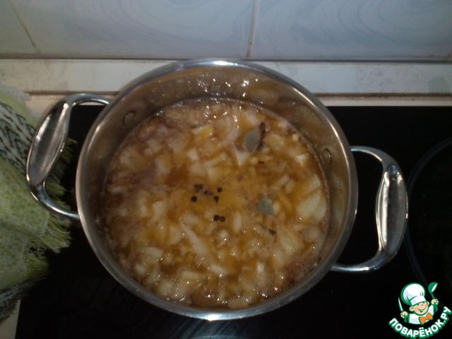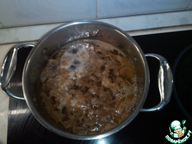Выложить в кастрюлю, перемешать. На этом этапе можно посолить по вкусу и добавить перец горошком и лавровый лист. Варить еще 30 минут.
