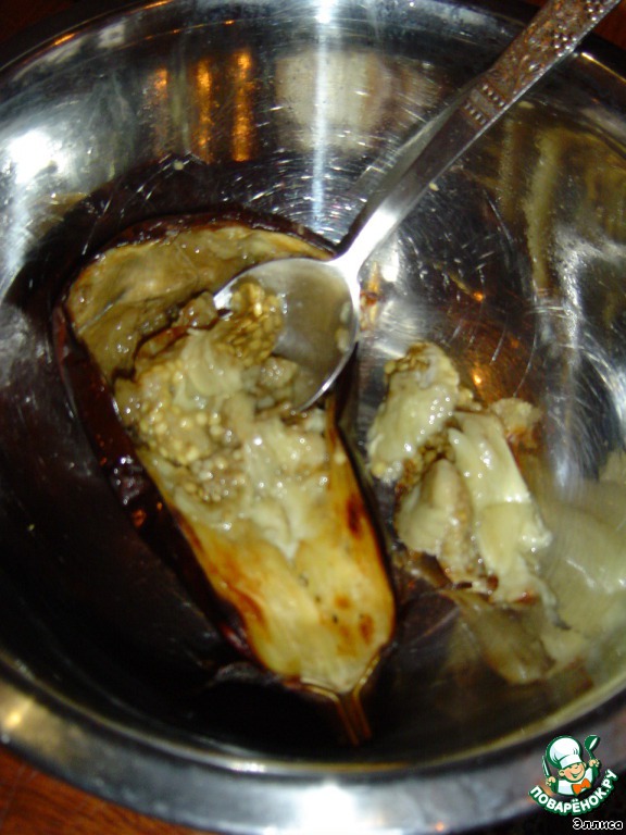 Баклажаны охлаждаем и вынимаем из них мякоть.