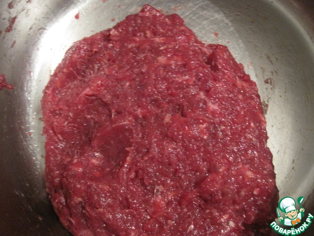 Говядину пропускаем через мясорубку.