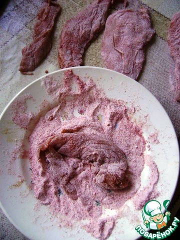 Затем запанировать филе в смеси муки и паприки и обжарить.