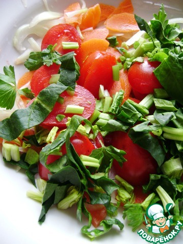 Хорошо вымыть и просушить зелень, шпинат и помидорки. Кукурузу слить и обсушить.