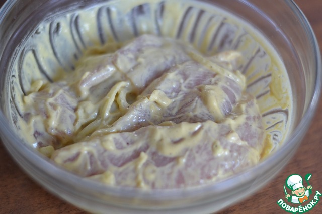 Перемешаем мясо с маринадом и поставим в холодильник на час.