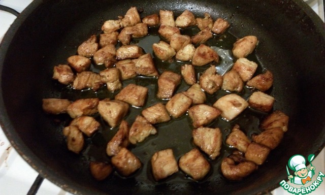 На хорошо разогретую с оливковым маслом сковороду, кладем куриное филе. Обжариваем на большом огне до готовности 7-10 минут. Выкладываем шумовкой на бумажное полотенце.
