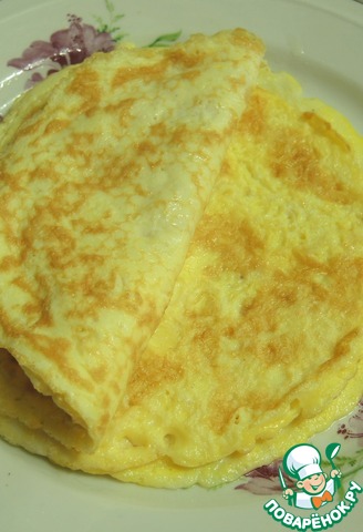 Яйца пойдут в салат в жареном виде. По одному взбиваем, немножко солим, и жарим на сковороде, смазанной 1 сл. л. масла.