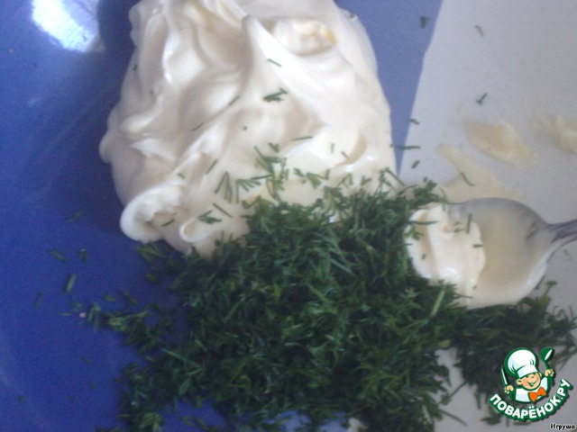Меленько режем укроп и хорошенько смешиваем с маслом.Немного солим.