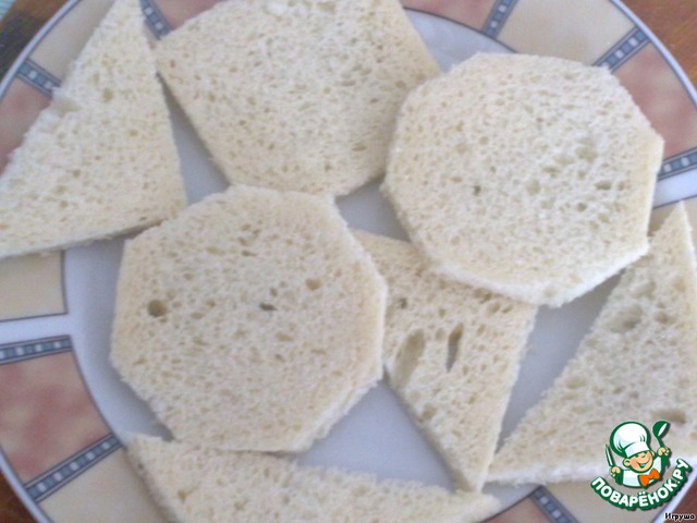 Отрезаем с хлебушка корочки, а мякоти придаем любую желаемую форму.