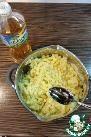Слить воду, добавить 1 ч. л. подсолнечного масла, хорошо растолочь.