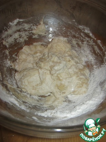 Постепенно начинаем добавлять вторую часть (большую) муки и вымешивать тесто.. После чего поставьте тесто на 3 часа в холодильник.