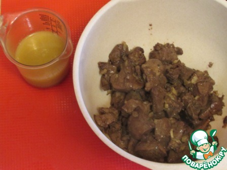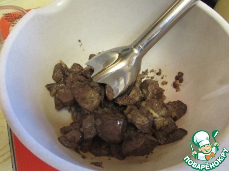 Образовавшуюся жидкость слить в отдельную посуду, печень в емкость для сбивания.