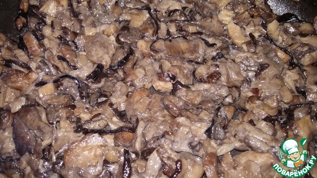 Я использовала уже зажаренные с луком, замороженные лесные грибы. Грибы, не размораживая выложить на сковородку, обжарить, заправить сметаной и сливками.