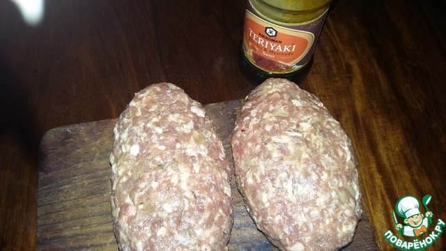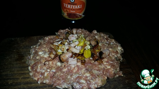 Добавить в фарш обжаренную луковицу, приправу и 2 ст. л. соуса-маринада "Терияки" от ТМ "Киккоман". Тщательно перемешать.