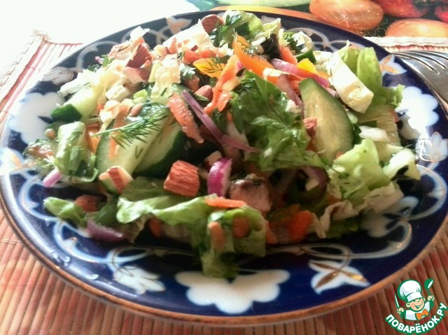 | Так как сейчас полным ходом идут дни Великого поста, то я предлагаю вам попробовать этот салатик. Много заменяемых продуктов, что подходит как для сухоядения (Понедельник, среда и пятница – это дни сухоядения. В это время нельзя заниматься горячей обработкой продуктов, добавлять в готовые блюда растительные масла. Можно есть черный хлеб, овощи и фрукты (фруктовые или овощные салаты), пить воду и компоты. ), и для тех дней когда пищу можно обрабатывать. И что очень важно в нем нет ни грамма масла. |