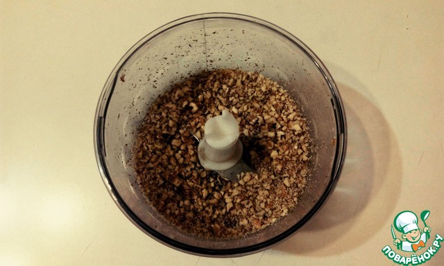 Орехи смолоть не сильно мелко. Можно порубить ножом.