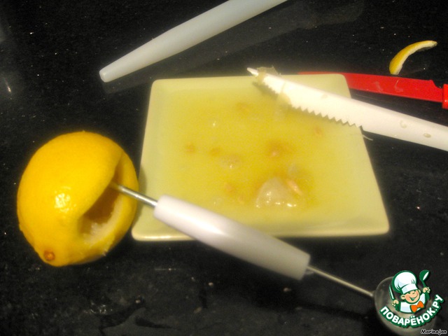 Лимонное желе развести по инструкции (воды добавить чуть меньше положенного), дать остыть, и влить в лимон.