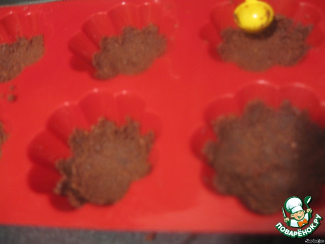 Эту массу утрамбовываем в формочки. Я заполнила их не до краев.