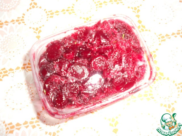 Вишню предварительно вынуть из морозильника и разморозить при комнатной температуре.