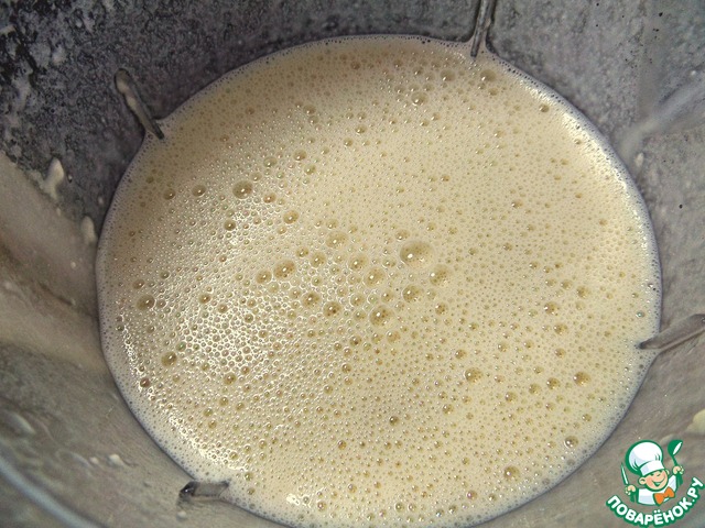 Делаем блинное тесто. В молоко вбиваем яйцо, добавим сахар немного, ваниль, соль, разрыхлитель, муку просеянную.