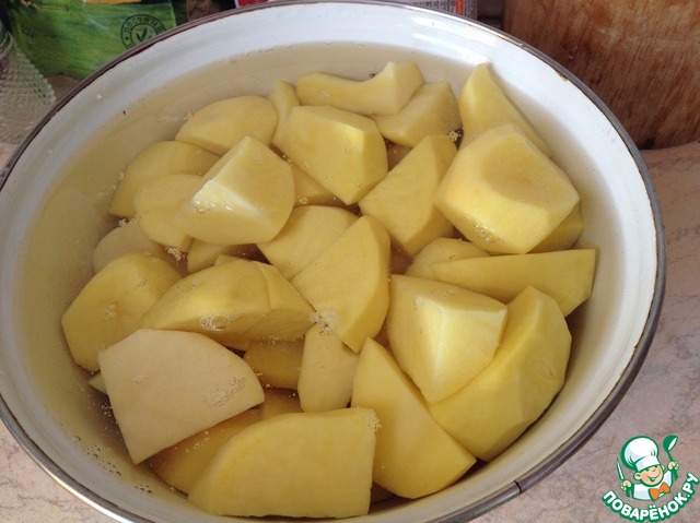 После того как картофель сварится, нужно вывалить его в дуршлаг и слить всю воду, переодически "встряхивая" для придания шероховатости.