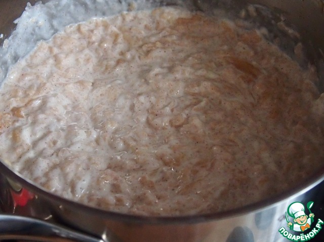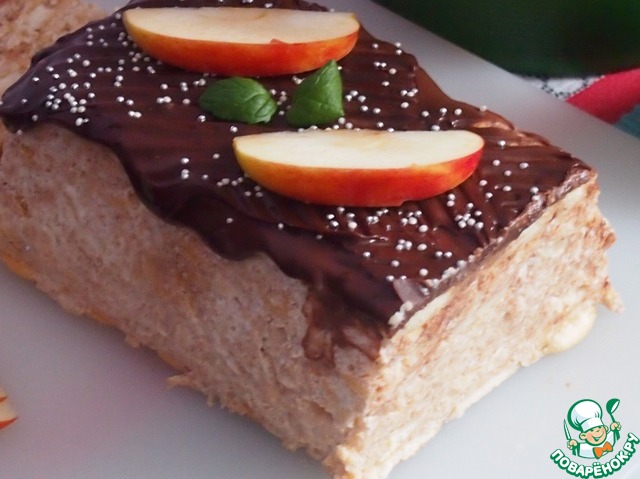 Сверху выложить часть яблочно-творожной смеси, затем снова слой печенья.
