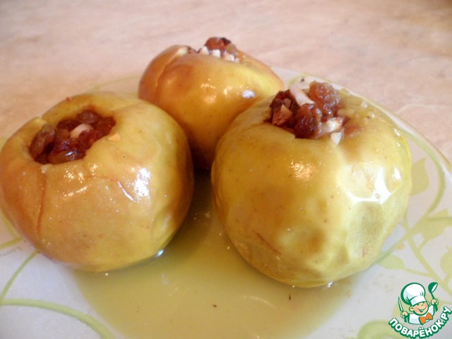 Из яблок аккуратно вырезать середину, оставив дно нетронутым. Начинить их медовой начинкой.