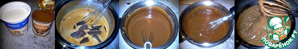 Так же аккуратно и постепенно вмешайте раствор какао - кофе.