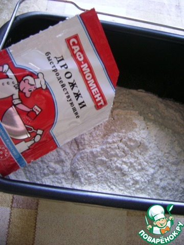 Тесто я завожу в хлебопечке. Просеянную муку, манку, чуть теплую сыворотку, соль, сахар и масло выложить в ведерко хлебопечки. Добавить дрожжи Саф-момент и включить программу Основной замес –у меня это 2,5 часа.
