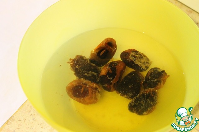 Пока тесто отдыхает, финики залить кипятком и оставить на 10 минут.