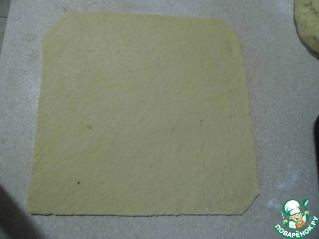 Вторую часть теста раскатываем и выстилаем форму.
