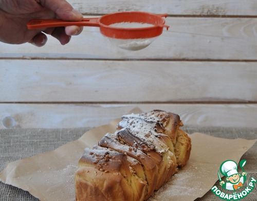 Готовому пирогу даём остыть, достаём из формы. По желанию посыпаем сахарной пудрой.