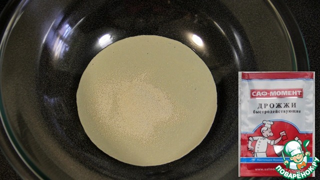 Дрожжи растворяем в теплой воде в глубокой миске и даем постоять 5 минут. Я использовала дрожжи ТМ Саф-момент.