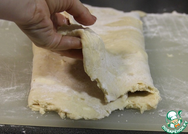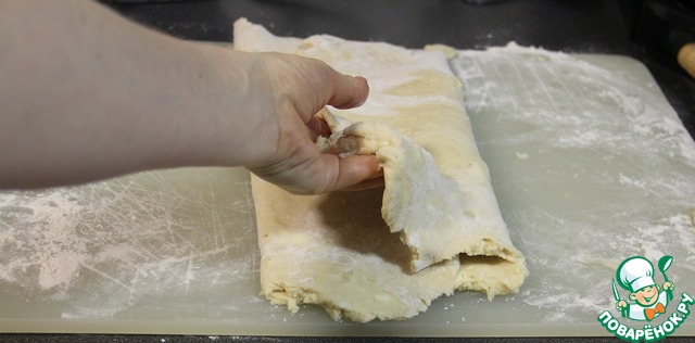 И опять складываем в три слоя и ставим в холодильник на 30 минут.