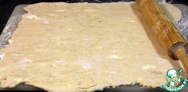 И раскатываем скалкой делая прямоугольник примерно 40 х 50 см.