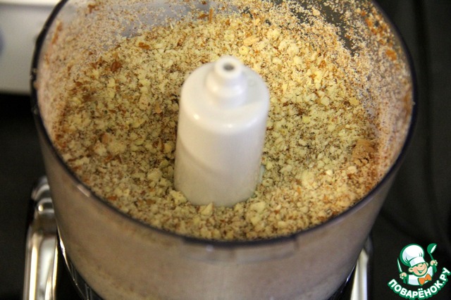Готовим тесто. В кухонный комбайн помещаем муку и масло, порезанное на тонкие куски и перемешиваем.